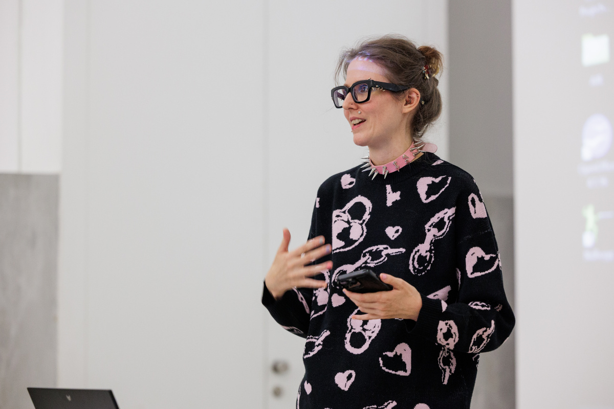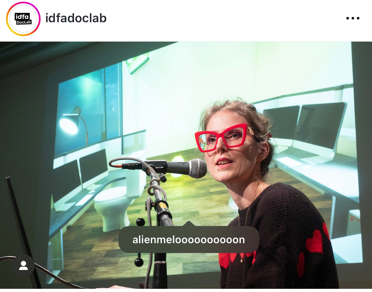 - Image of me playing "individualism in the dead internet age" at IDFA