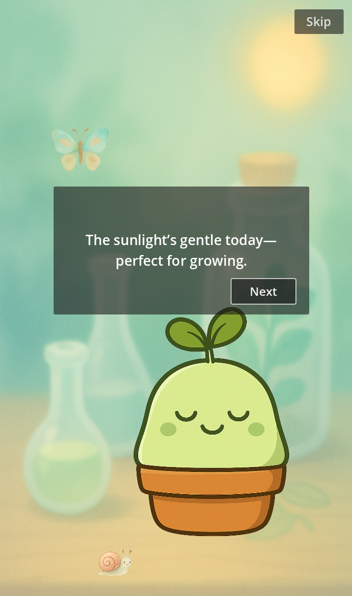 My aim is to create a relaxing, fair and persistent sci-fi experience supported by an immersive story, without the usual pressure found in modern mobile games.