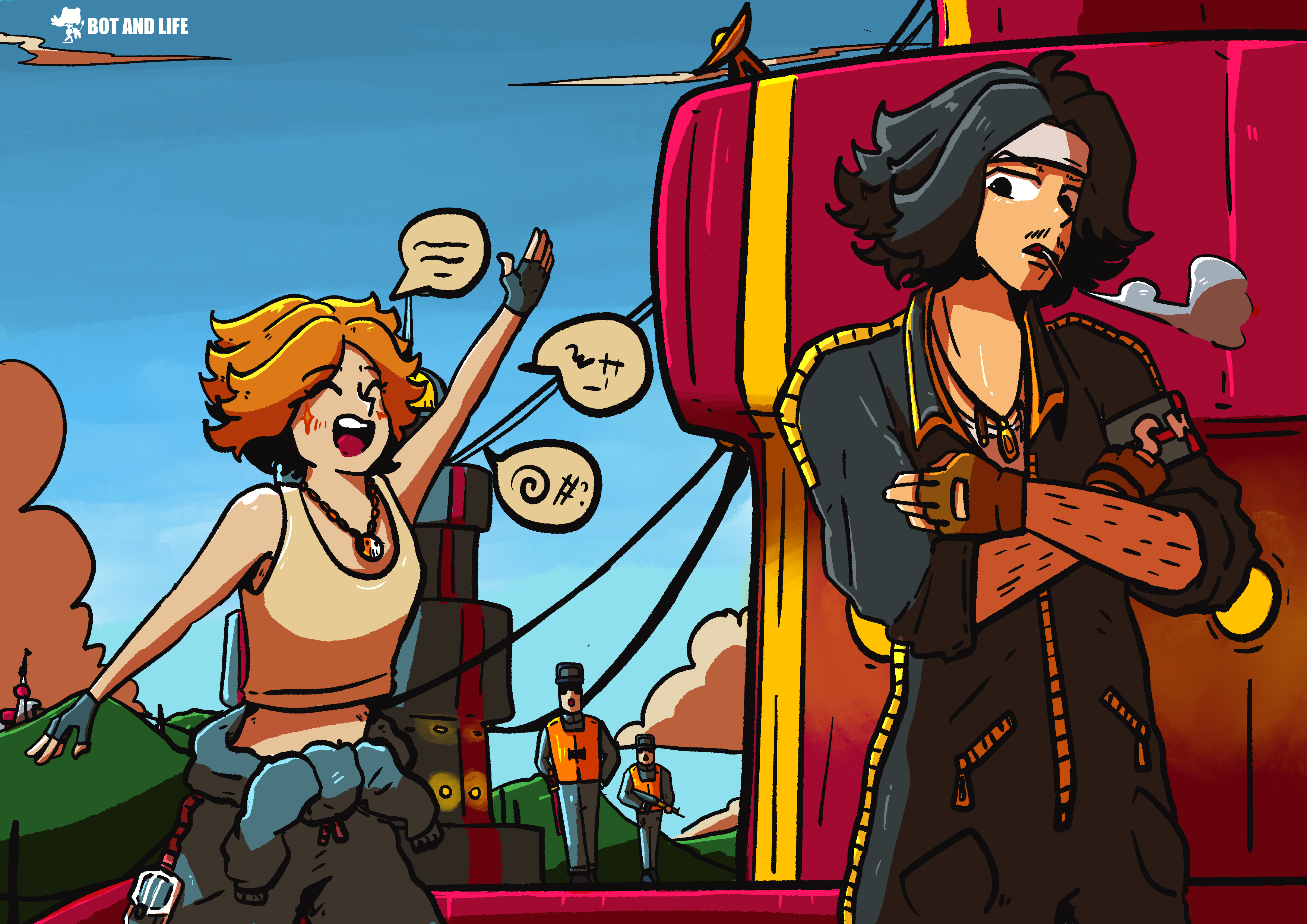 Tried pushing brighter colors and a more playful vibe in this scene! I wanted the characters’ personalities to contrast — one loud and energetic, the other totally done with everything 😂