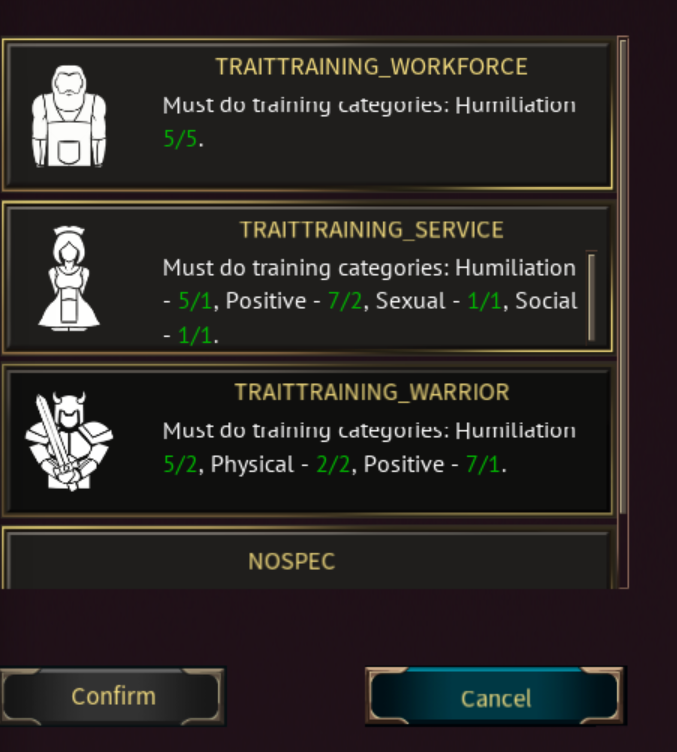 I have thought about what the servants guild can provide and I have thought about custom slaves like a slave of a specific race, sex with one or two specific traits. Or maybe a training to gain a trait, I really would spend guild points to be able to buy a human with the +20% collection speedy trait. Maybe on the next exotic trader visit you can have your command. You can link this service to exotic trader, and servant guild upgrades.