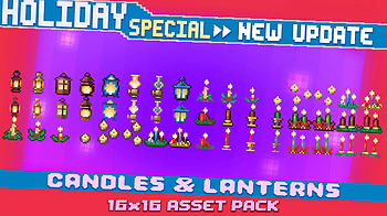 48 new assets of candles and lanterns are now available. Enjoy!! What's Inside: 284 handcrafted 16x16 ready-to-use icons and props in a transparent PNG file Tre...