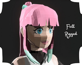 Lucy – Low-poly game character with rig, textures, and multiple facial expressions.