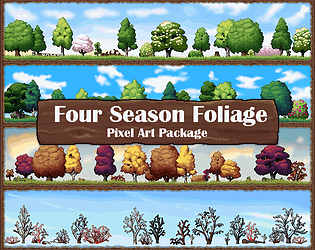 Animated Pixel Tree and Plant Assets for Side-Scrolling Games
