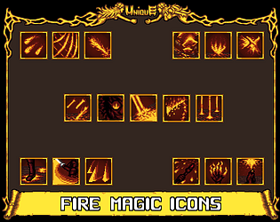 45 carefully crafted and unique fire spell icons for any game project.