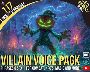 A set of 142 humorous voice effects, performed as an Orc, Ogre, or a similar large fantasy character.