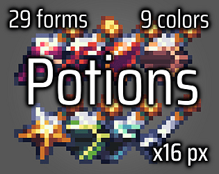 This pack includes 16 animated potions! Amazing pixel art and colorful style for your projects