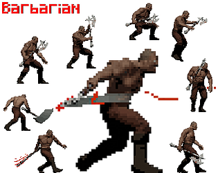 Side-Scroller style Barbarian character with magic molten blade axe attacks