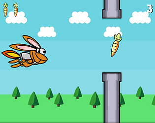 Flappy Bunny. Click or Touch to move up and down. Collect food and dodge the pipes.