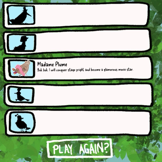 That's cute, I love the bird sound effects! Thanks for making this game!