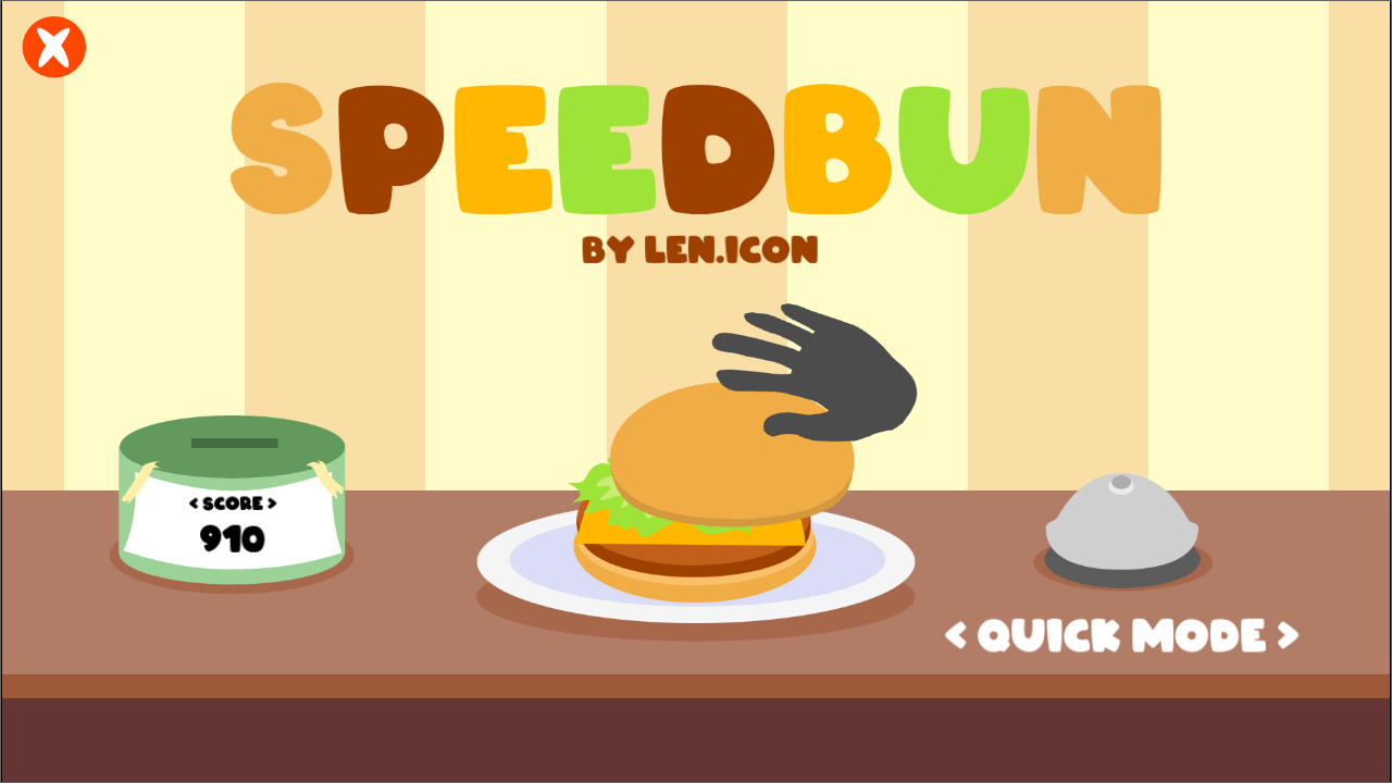 Len.icon, with SPEEDBUN, this game might just be the BEST physics game that stands out in simplicity. The calm and cheery music, and the fact that you have to assemble as many burgers as you can (even if it's a large order) is just OH-SO unique and inspiring. It kind of reminds me a bit of Cooking Fever for iOS and Android, except that customers NEVER get impatient, and that all there is for the game is just burgers. That's it. No fancy cuisine, no exotic dining or anything like that. Just good ol' fashioned McDonald's quality patties made with "fresh" lettuce, Kraft singles, and fresh outta the grill. Oh, and the customers. They come around so fast that you hardly even expect them. There was literally one I encountered to where it's Godot himself. Just simply magnificent. Though, for some reason on my laptop, the game is a TINY bit laggy, as from starting the game, and going back to the main menu, and the hand picking up the ingredients is a tiny bit janky as well. Nevertheless, AWESOME game, and overall, 5/5 STARS!!! ⭐⭐⭐⭐⭐. Go out and celebrate your victory, Len.icon. You deserve this rating. 🍔🍔🍔🍔🍔🍔🍔🍔🍔🍔