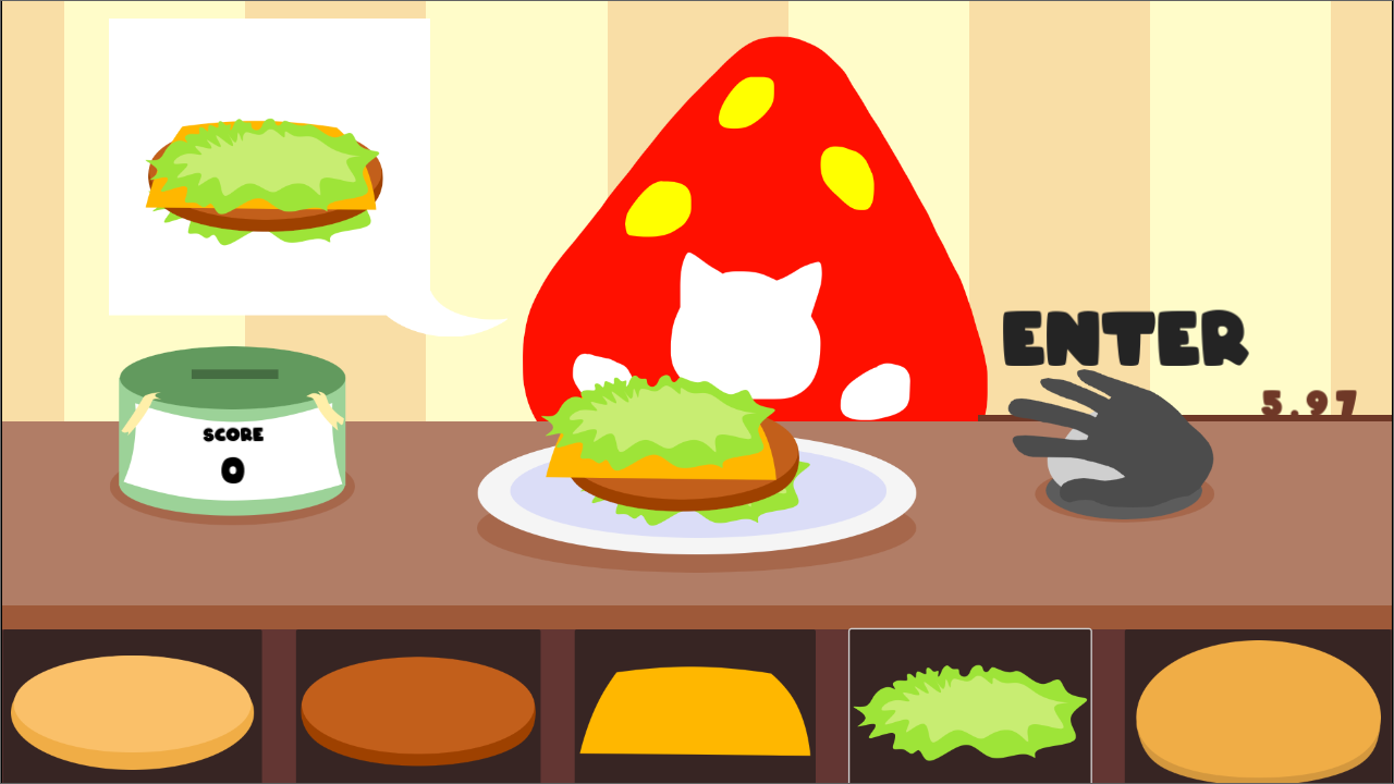 A man of culture I see. My favorite 3-piece-lettuce burger being appreciated. I love how you can just mess up unintentionally the whole burger and make them a salad lol. Very fun and awesome game! Great work!