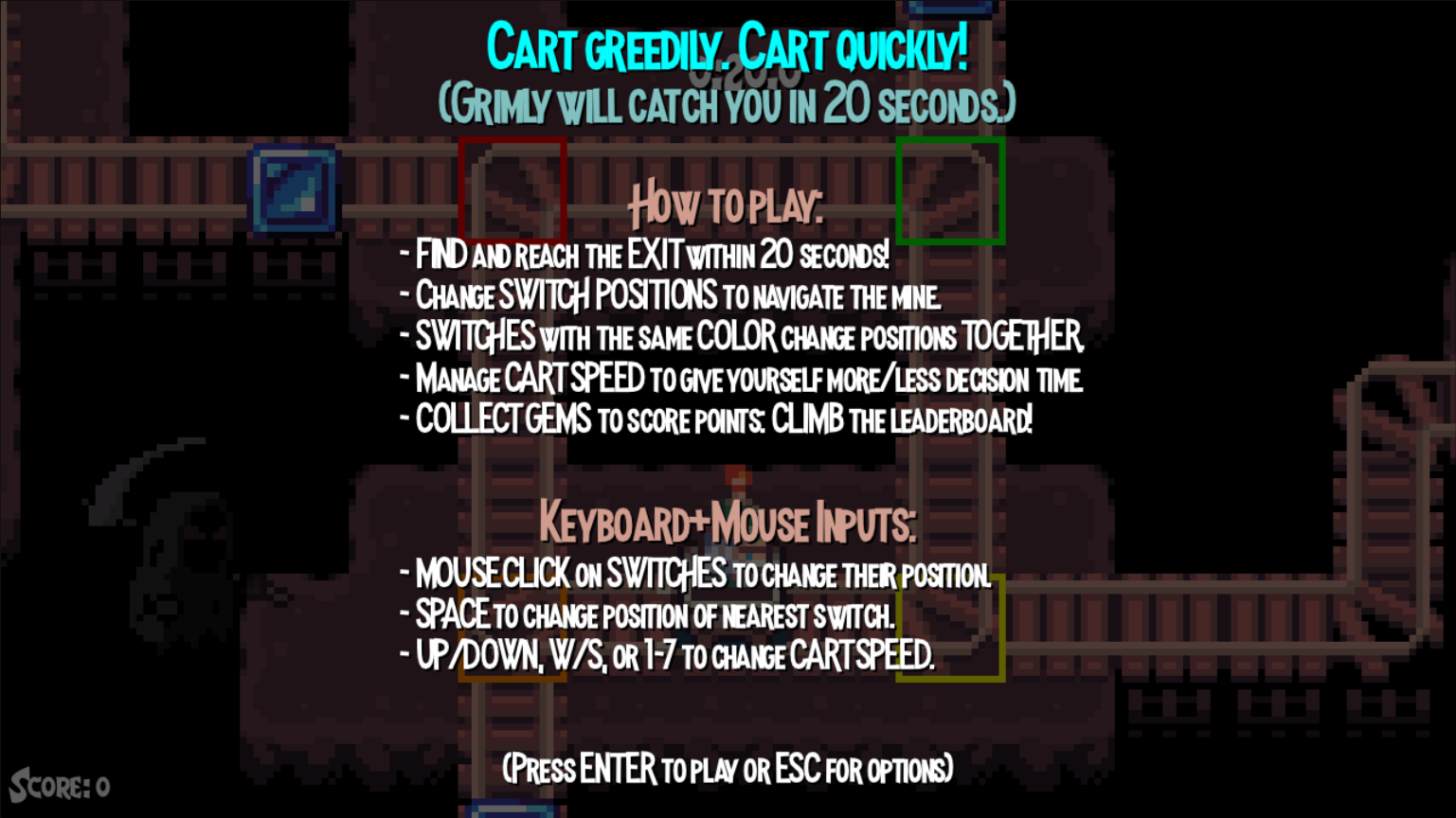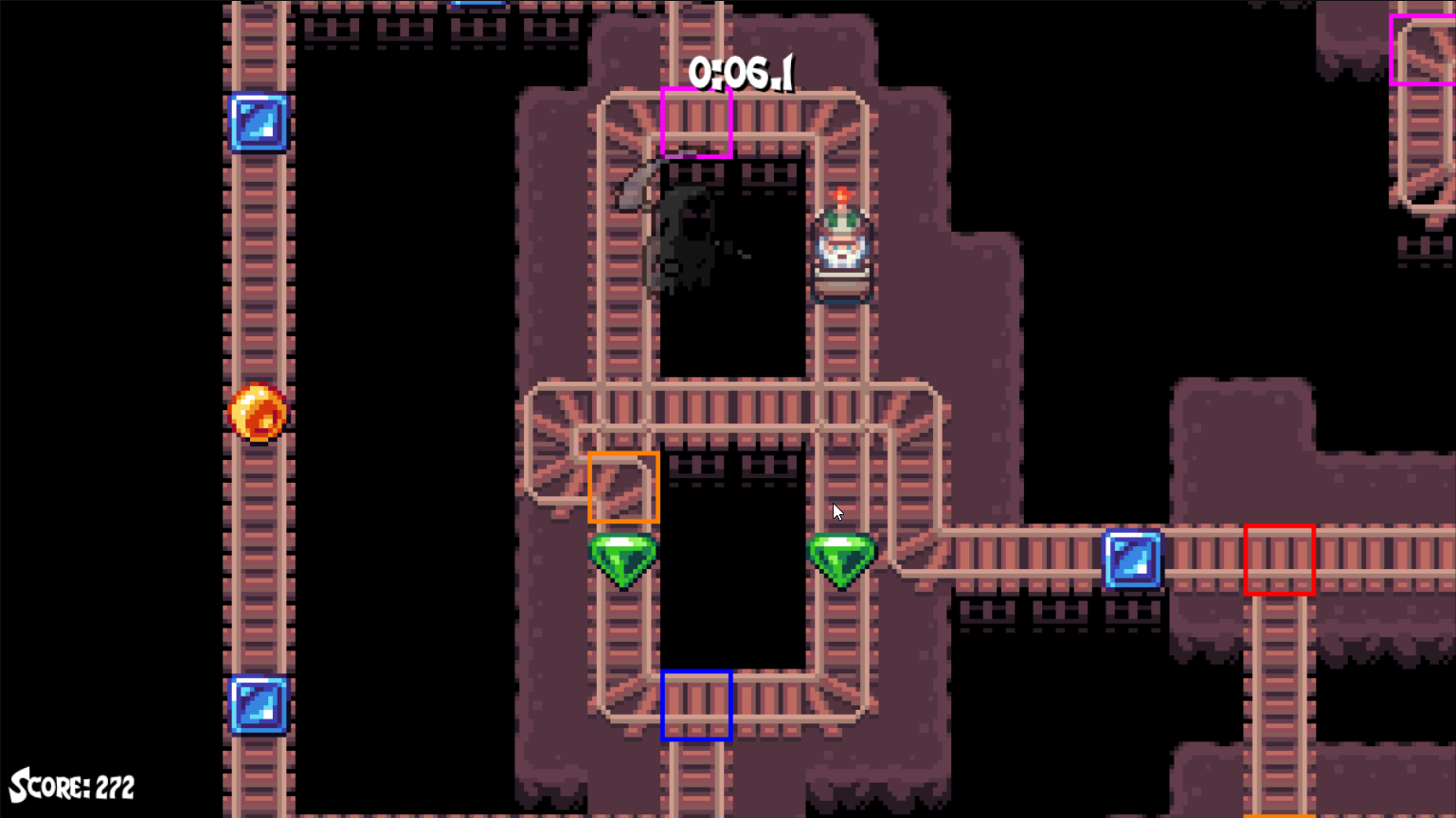 This is such a cool game. Its intense and very fun. I really like the mechanic of switching the direction of the rails. Nice art and audio. Good work!