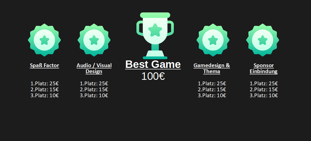 - Für den Game Jam werden Assets(Musik, Modelle, Sound, Grafiken, etc.) bevorzugt, die während des Game Jams selbst erarbeitet wurden