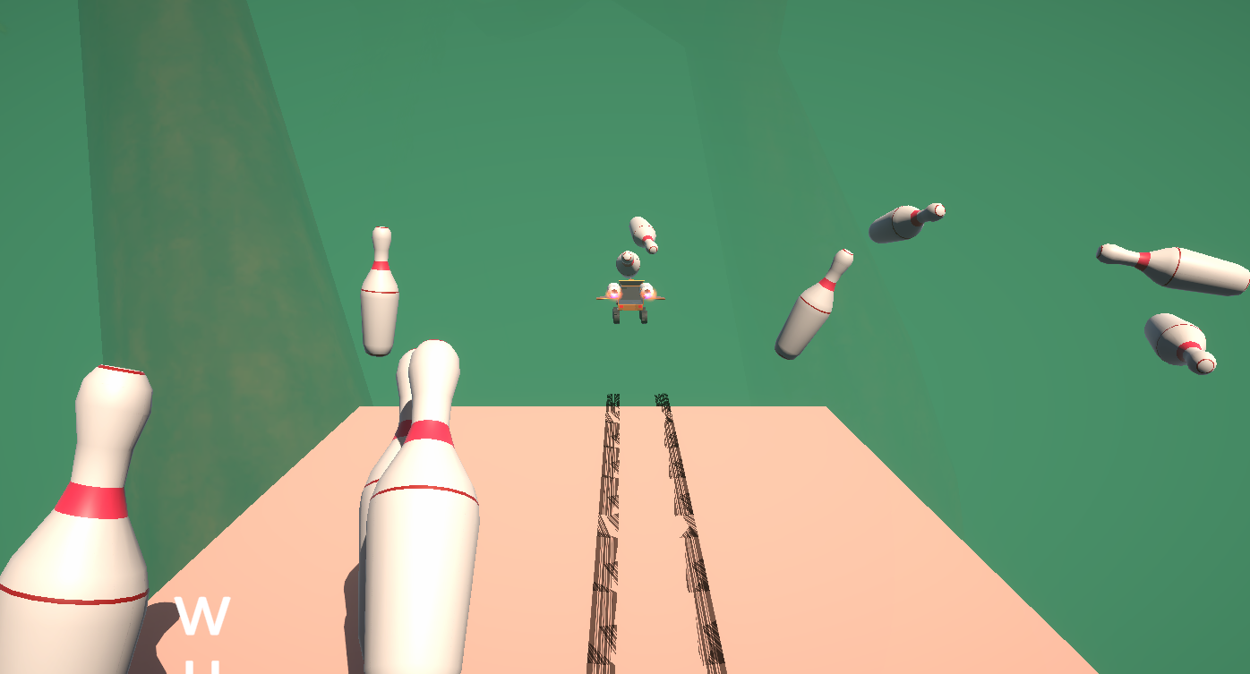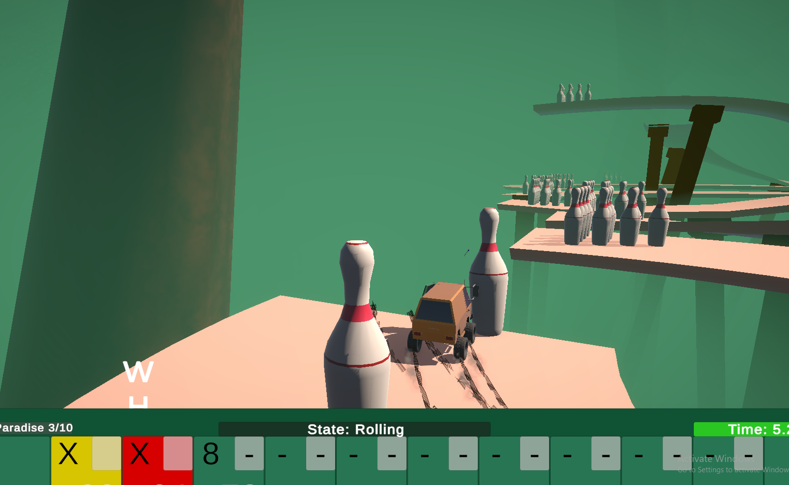 Well that was fun! Got stuck on the seventh lane- the camera just stayed at the end with the one pin I didn't knock down while the game continued on. But it's a great concept and I think the wonky driving is great for the it. Fun little cinematic intro as well.