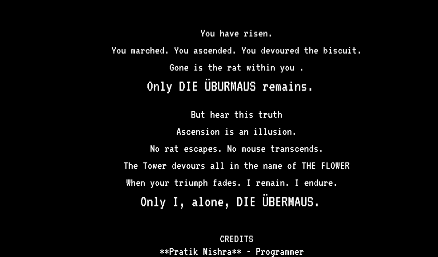 Very cool art style - suits the game narrative really well. Although the 3D physics is a bit challenging for me, I still enjoy being an ambitious rat and running around. Overall a quite immersive experience. Bravo!