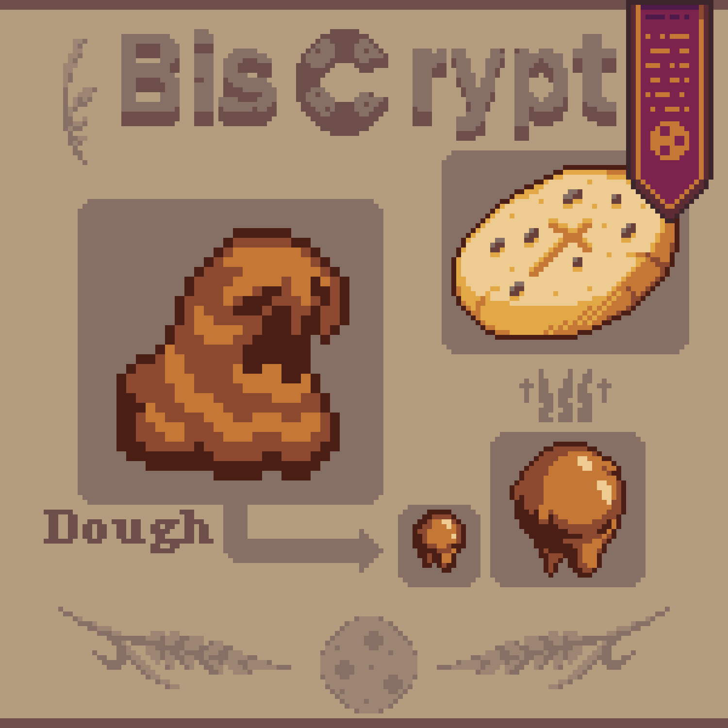 You play as a baker in a dungeon, killing monsters to get ingredients and make biscuits based on them