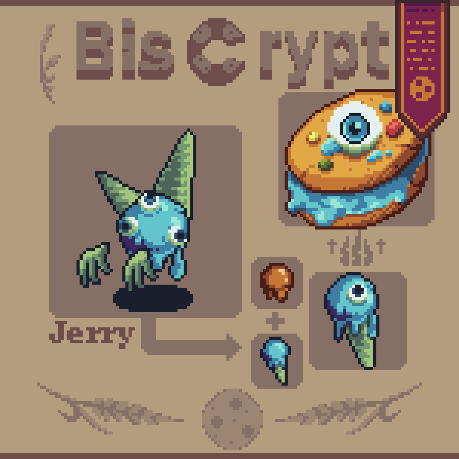 I did manage to clear out quite a few rooms in order to head back to the altar and make my cookies, but I didn't see any indicators of how much of each crafting resource I had or whether or not I could even make the cookies. It took me a few separate visits to see the value selector UI below the cookies. I would definitely recommend that this be more prominent. I made 10 cookies and got sent back to the starting room, triggering the chorus audio. Wondering if this is the effective win screen for the jam or whether I'm missing further steps. I was hoping to get some hp buffs to take a stab at the blue ice cream dude, but I just don't think I'm able to make it happen on 2hp.