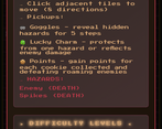 Cool take on Minesweeper! Very unique kind of game, but I'm no minesweeper player, so I wasn't exactly good at it. I will say that I do wish I could know a bit more about the board, as although it may be built off of minesweeper, it's still a different kind of puzzle game. The goggles and clover help with that a decent amount, but I still ended up losing to a bug I wouldn't have known about. Other then that, I managed to beat the beginner and intermediate levels, and I had quite a good time! It also feels quite polished, very nicely put together. The leaderboard is also fun, I tied first place on beginner for the heck of it. Cool stuff!