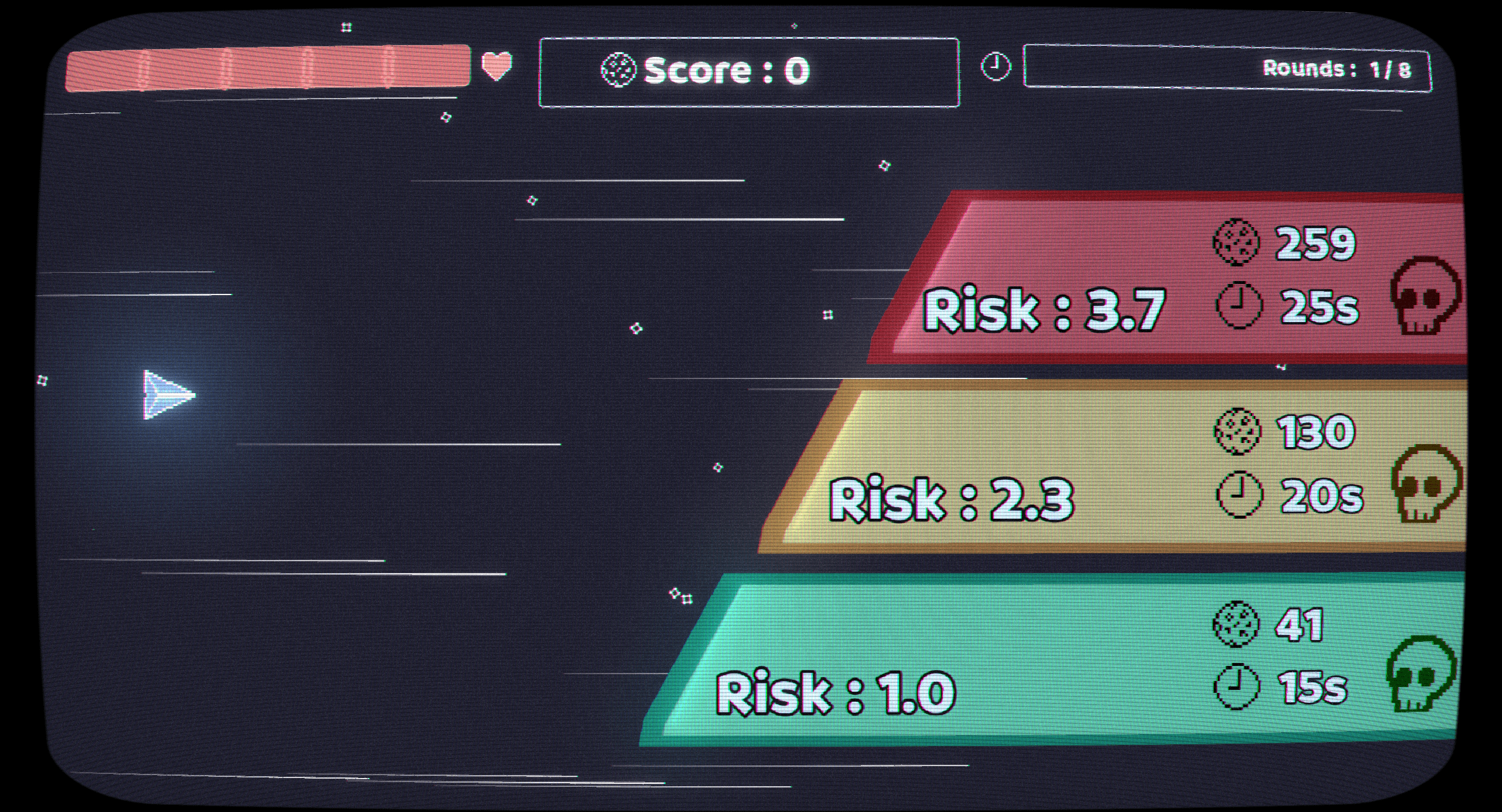 Fun and very polished! I enjoyed all the work you put on the little details that made the game feel great. Also the risk vs reward theme usage is very well done. Nice work!