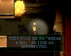 In this platformer, the player must balance their own health with an "audience entertainment" meter. In order to keep the audience entertained, the player may deliberately injure themselves (coming at the cost of HP) or narrowly dodge obstacles. Either way, the player can only win through taking unusual and interesting risks.