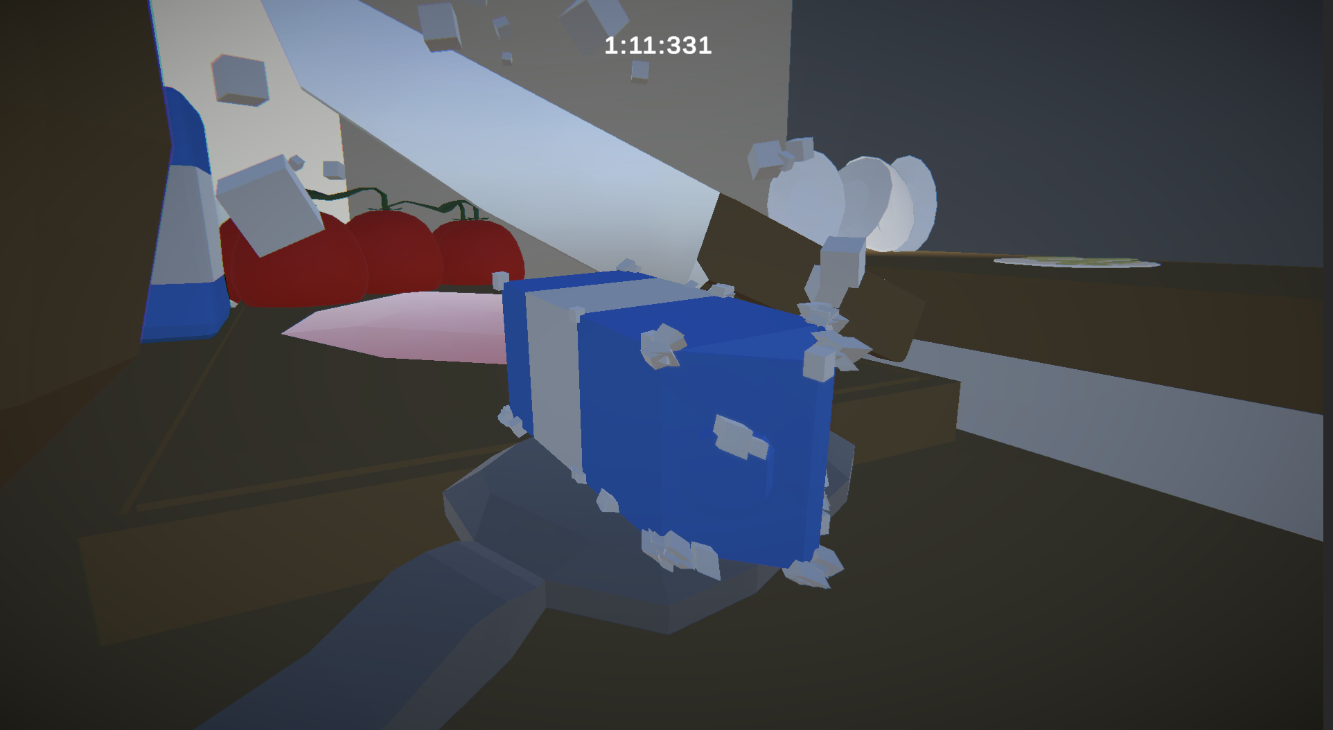 The controls are insanely difficult and it took me a few tries to get to the shelf alone. i though i was gonna make it and i was already Raging up till that point but the knife killed me and just lost it XD. Still really nice game, excellent concept, the controls do need some more refinement if you don't want people smashing their laptops :D