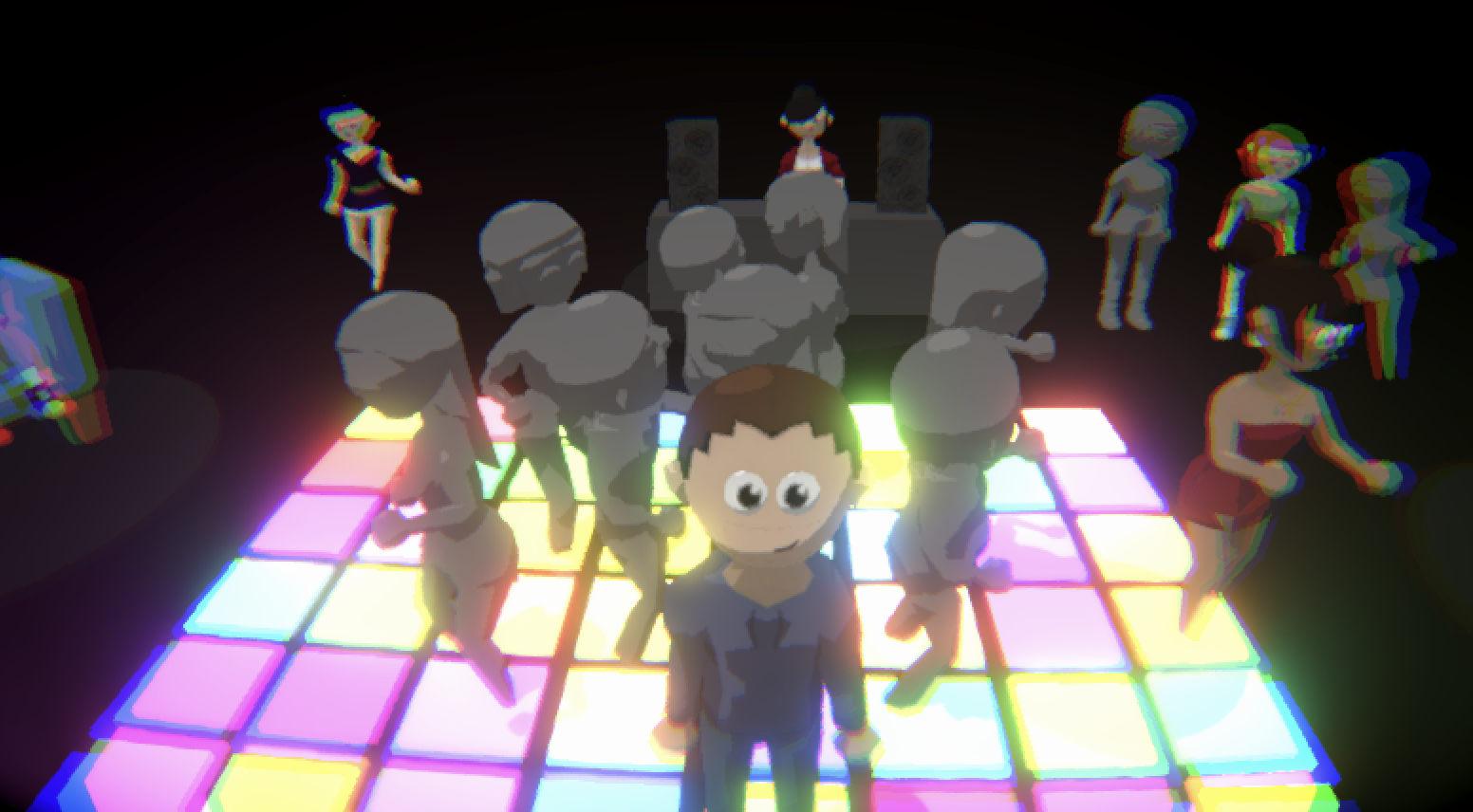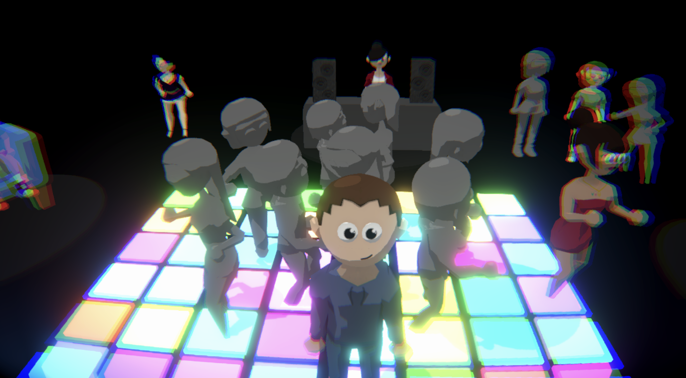 That girl in blue in the corner is basically me. Also, you can just walk away from the party and get lost in an empty void, which I think is funny.