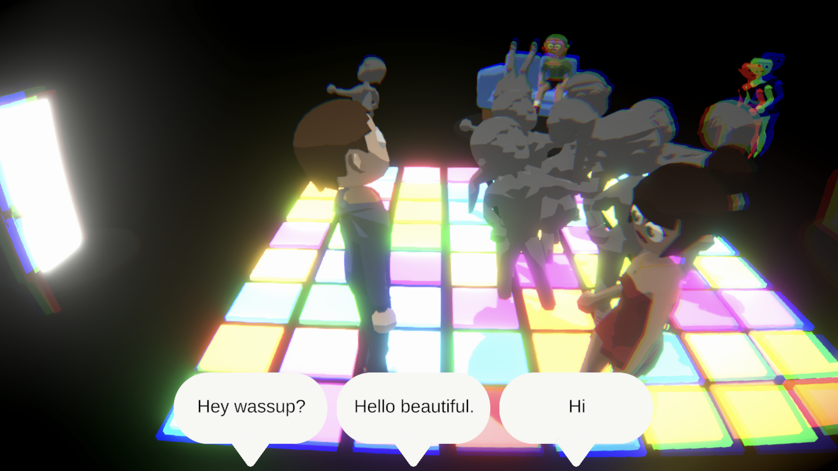 Glad you could rizz up the only rizzable girl there. Yeah we didnt have time to add a good sound effect for getting the date, but just imagine that one "yay" sound effect where its the same guy saying yay layered multiple times.