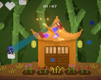 First off, the art looks great. The animations and particle effects do a lot here as well. I really like the bullet time mechanic. The game would probably be way too hard without it. I was able to make it through to the end during my first playthrough. I hadn't really been on top of my game for the entire time, so I only got a 'B' rating. I jumped back in to see what would happen if I just left the farmer exposed to the ninjas. Final score: 0 enemies, 0 crops, 0 score. Rating? Also 'B', so maybe another tier would be nice. Or I was just that bad my first time around, lol.