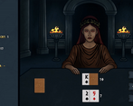 You risk by playing a roguelike BlackJack inspired card game against Pythia in Delphi with several upgrade powers!