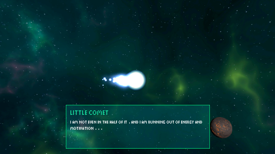 The concept is really nice and unique! I would say it needs more quality of life adjustments though. A restart button as the other commenters said would help a lot. Seeing a vague trajectory for where you are sending the comet would also help with calculation, I think the game is a bit too hard as it is right now. That being said, it was pretty fun to play!