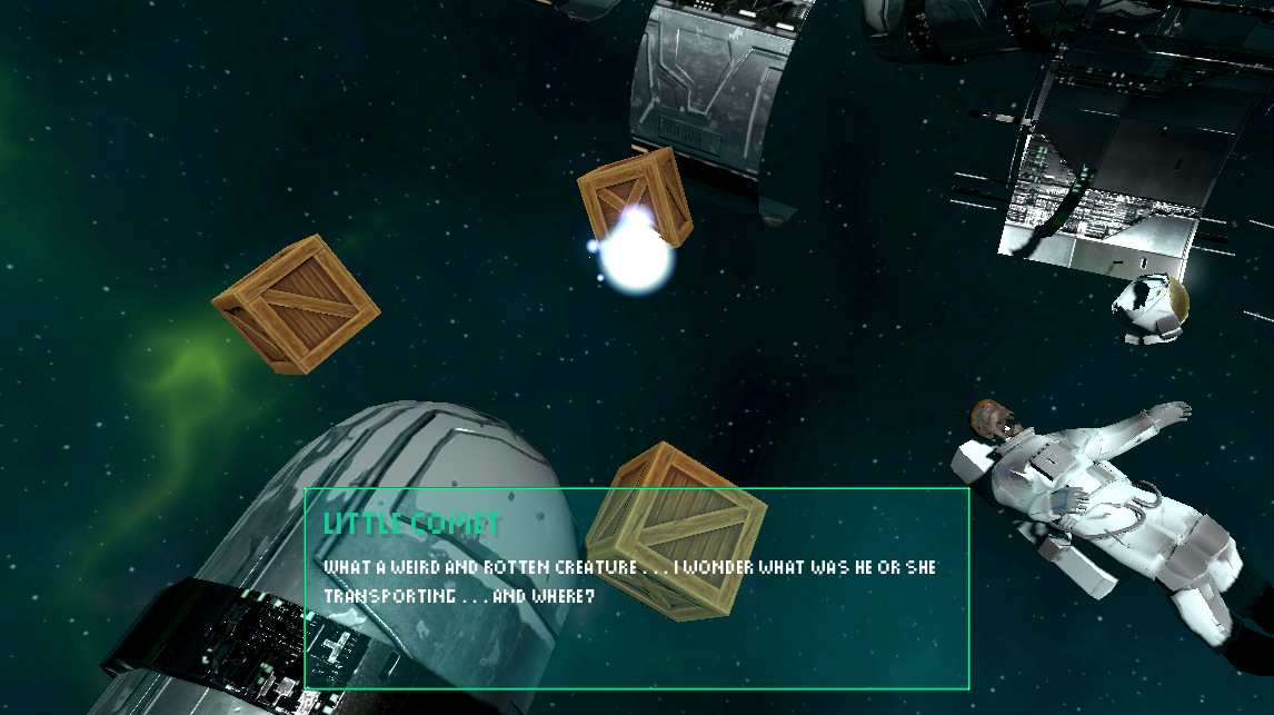I did all the coding and animations. I didn't do space background, and 3d assets (planets, astronaut, debris, and crates).