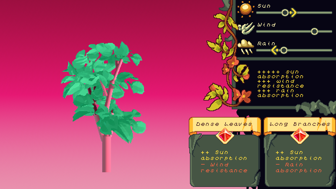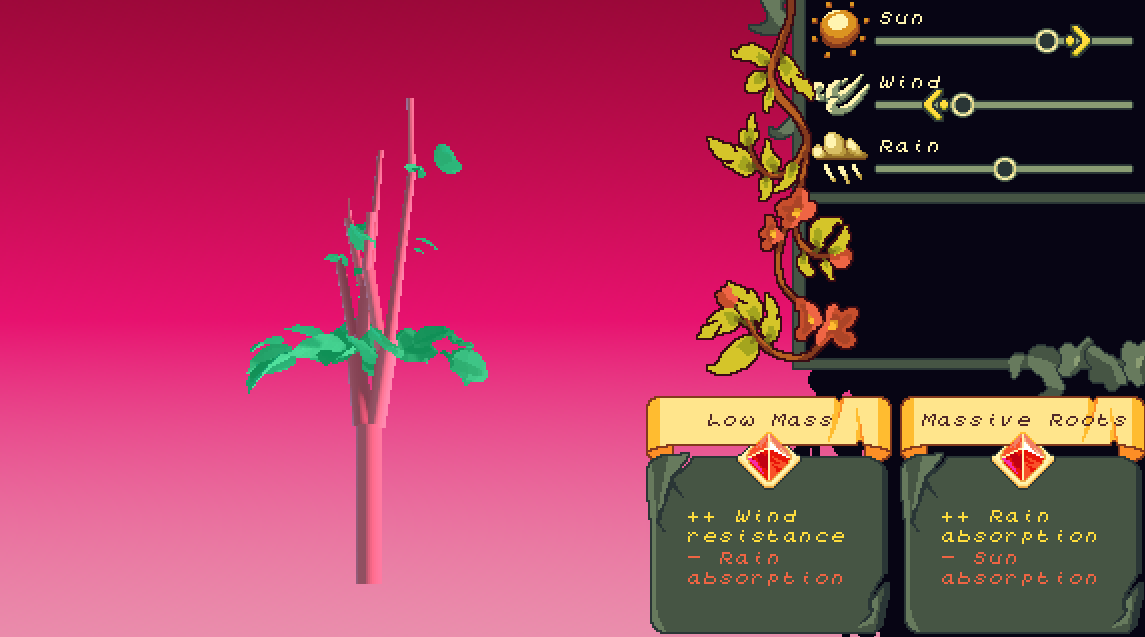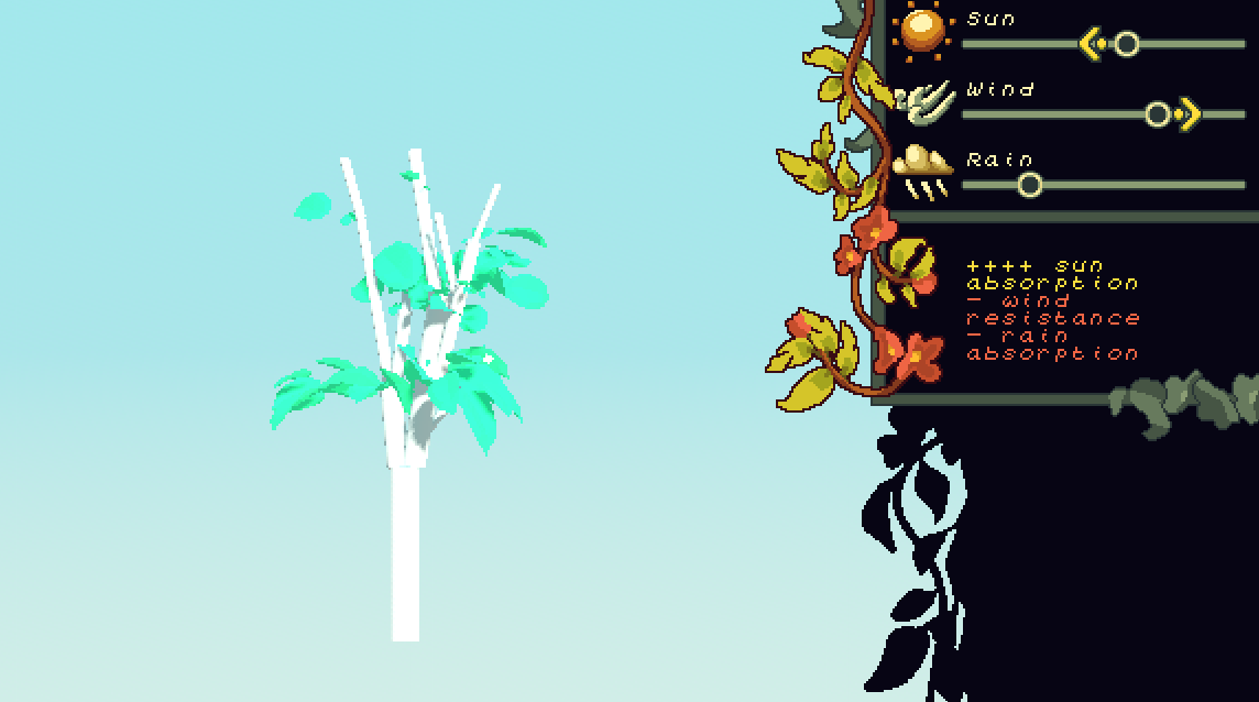 I really like this one! Really nice concept though sometimes it feels like the stats donβt particularly have an effect on the growth of the tree? (did a run with +windresist and -everything else and it just kinda looked the same?) Nice work tho!!