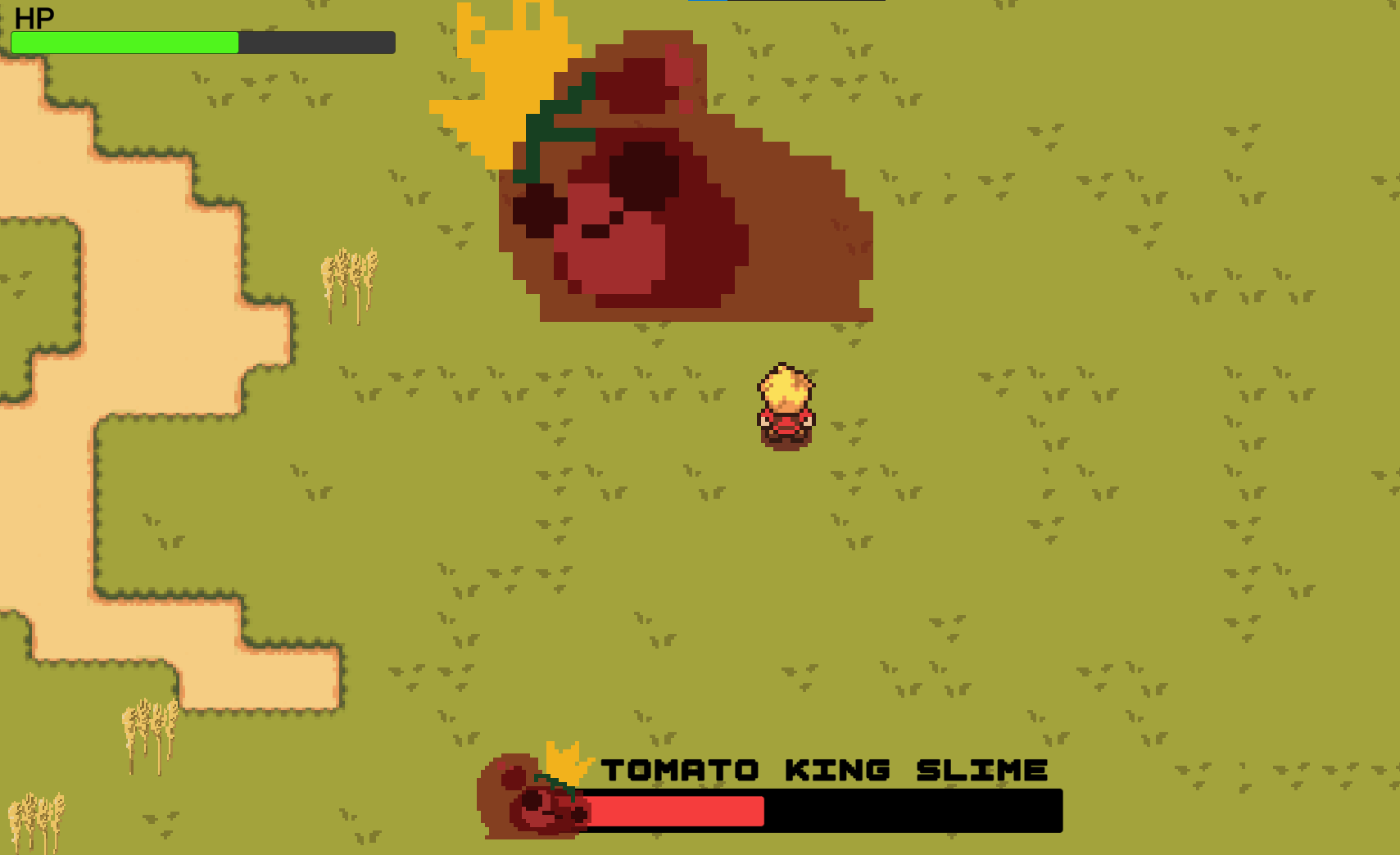 Very nice and cute prototype! I really like the animations for the king tomato. I found him and ran away because I didn't know how to get a weapon yet, and was shocked when he followed me all the way to my house! lol. Well done on getting it submitted! I hope y'all keep working on it!