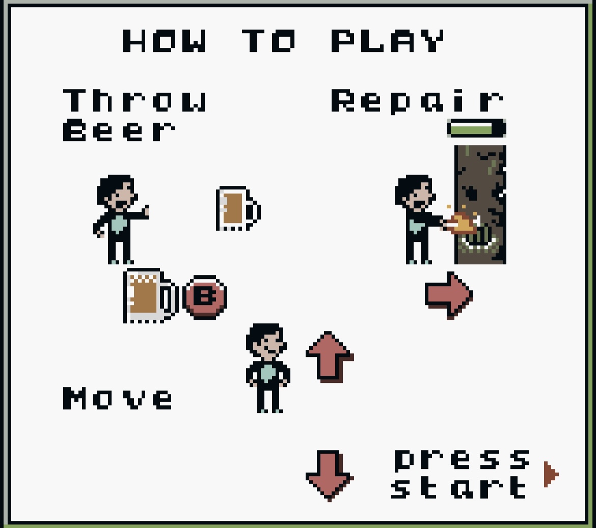 Would have loved to play something like this on a Gameboy. The art is great and the coctail upgrades are a nice addition. I had some issues with key presses registeing, but still managed to finish the game. Just wished the game was longer. Awesome entry to the jam!