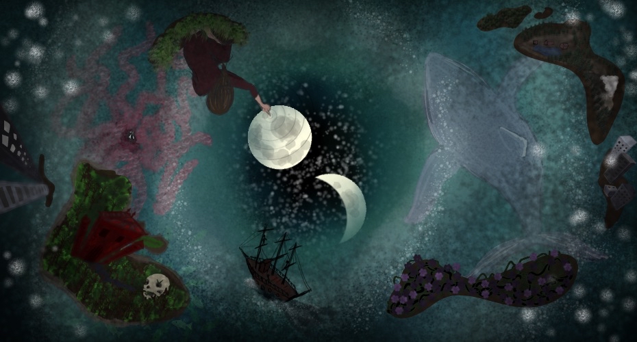 The sheer vastness of the ocean is as daunting and breathtaking as it is fascinating. This particular ocean goes beyond that though. Sometimes, there's no horizon to sail towards, other times, there are many different ones. It's possible to sail among the moon and stars or even on the underside of the surface. The currents shift and turn in incomprehensible ways and things that seem to be far are actually really close and vice versa.