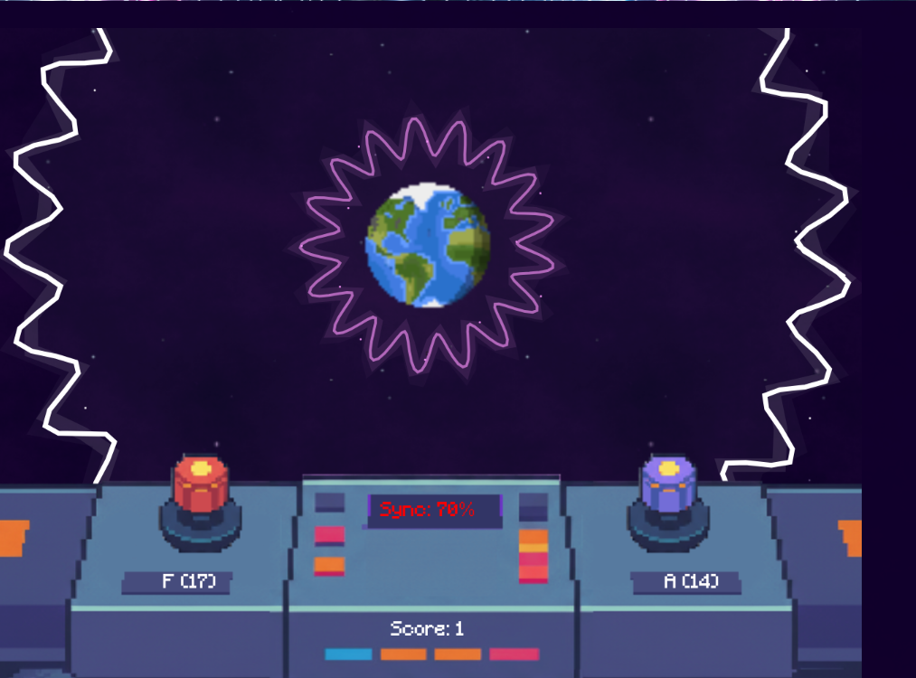 Very neat gameplay mechanic. It was somewhat difficult to pull off, though. I wonder if having some sound effects adjust frequency based on your sync percentage would have helped, on top of having the actual sync percentage value as you did.
