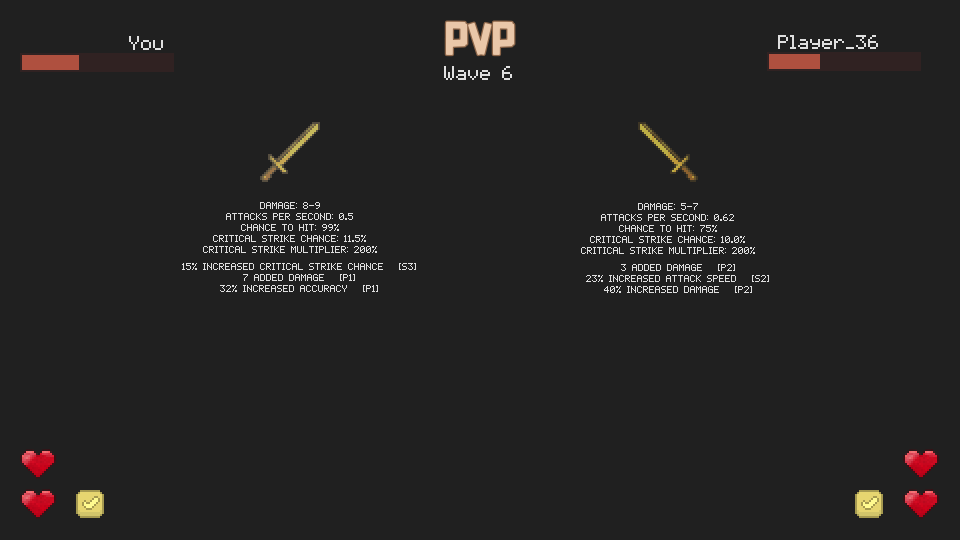 I think it's technically impressive to integrate PvP and PvE into a game jam game, but the game is confusing and not very engaging for me personally. I was halfway through when I even realized that I was playing against waves of enemies and I was customizing my sword's stats in a meaningful way.