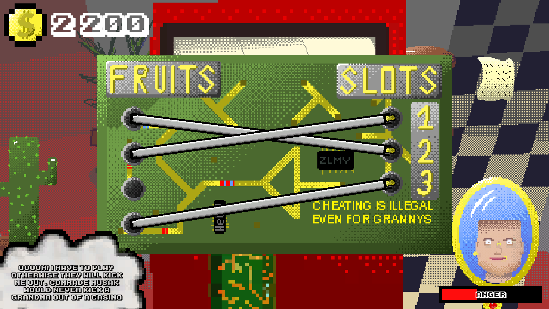 The vibe is great, the whole grandma-gambling setup made me laugh. :D Once I figured out how the machines work, it actually got pretty addictive. Really fun! :)