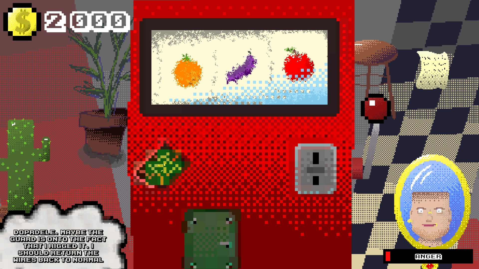 Very Czech. I like the intro. The art and music are good. It took me a minute to figure out all of the mechanics (cheating, buying items, the anger). Cool game!