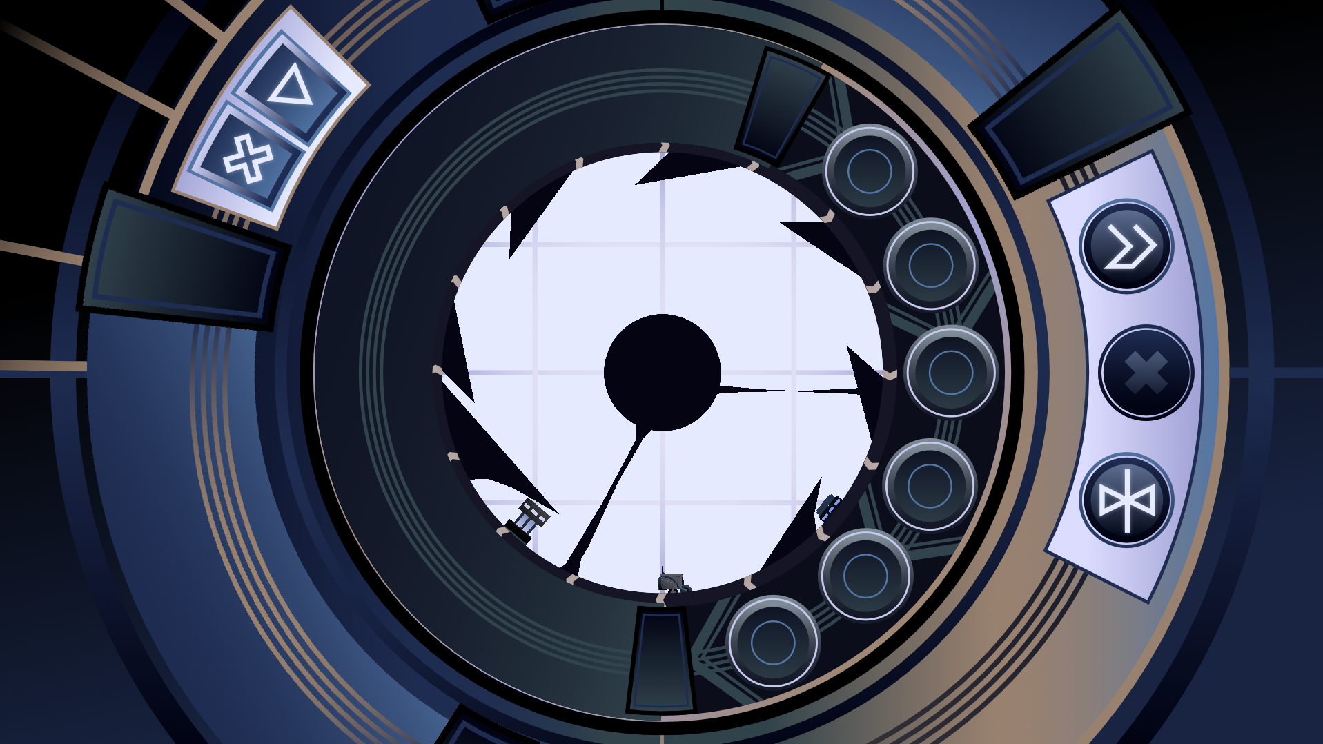 SISYPHEAN MEGASTRUCTURE’s game loop is founded on loops inside of loops. The player writes looping commands in order to complete each level. Players will find it to be a literally Sisyphean task to reach the megastructure's end. SISYPHEAN MEGASTRUCTURE also incorporates circular motifs throughout its aesthetics and level design.