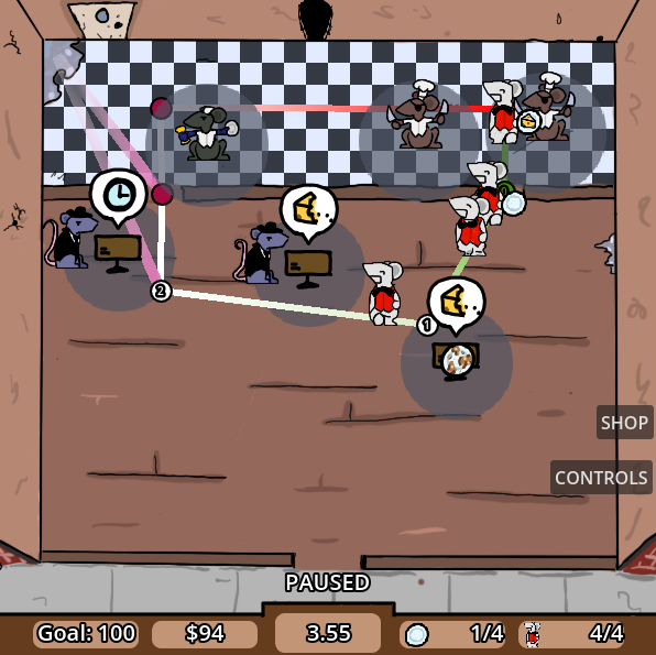 Really creative concept, having to micro-manage the servers to optimize my cashflow was a neat touch. I think like there’s a lot of potential in this idea of setting up your restaurant and then micro-managing your servers and I feel like having the game split in to two distinct phases would help the pacing a lot.