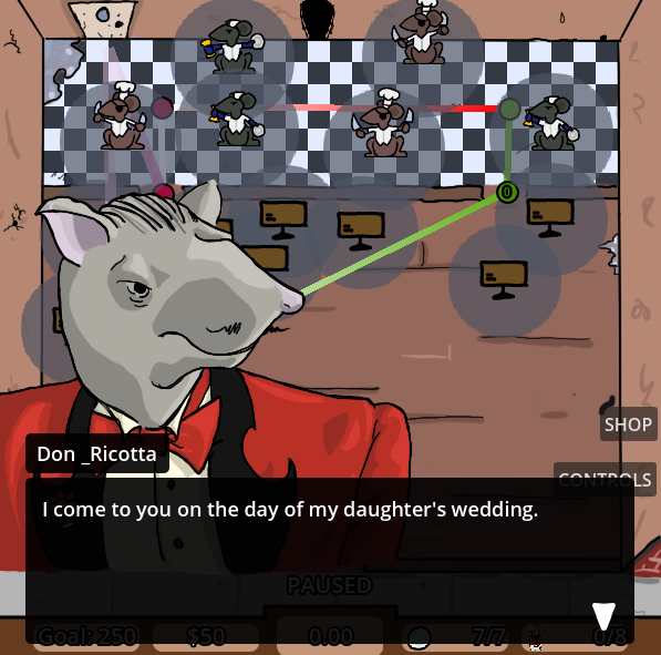 I really like the whole mafia aesthetic going on here, it’s really fun. The lines seem to still work while interacting with dialogue so when I was through the tutorial I’d managed to make a bunch of points heh. Really neat concept!