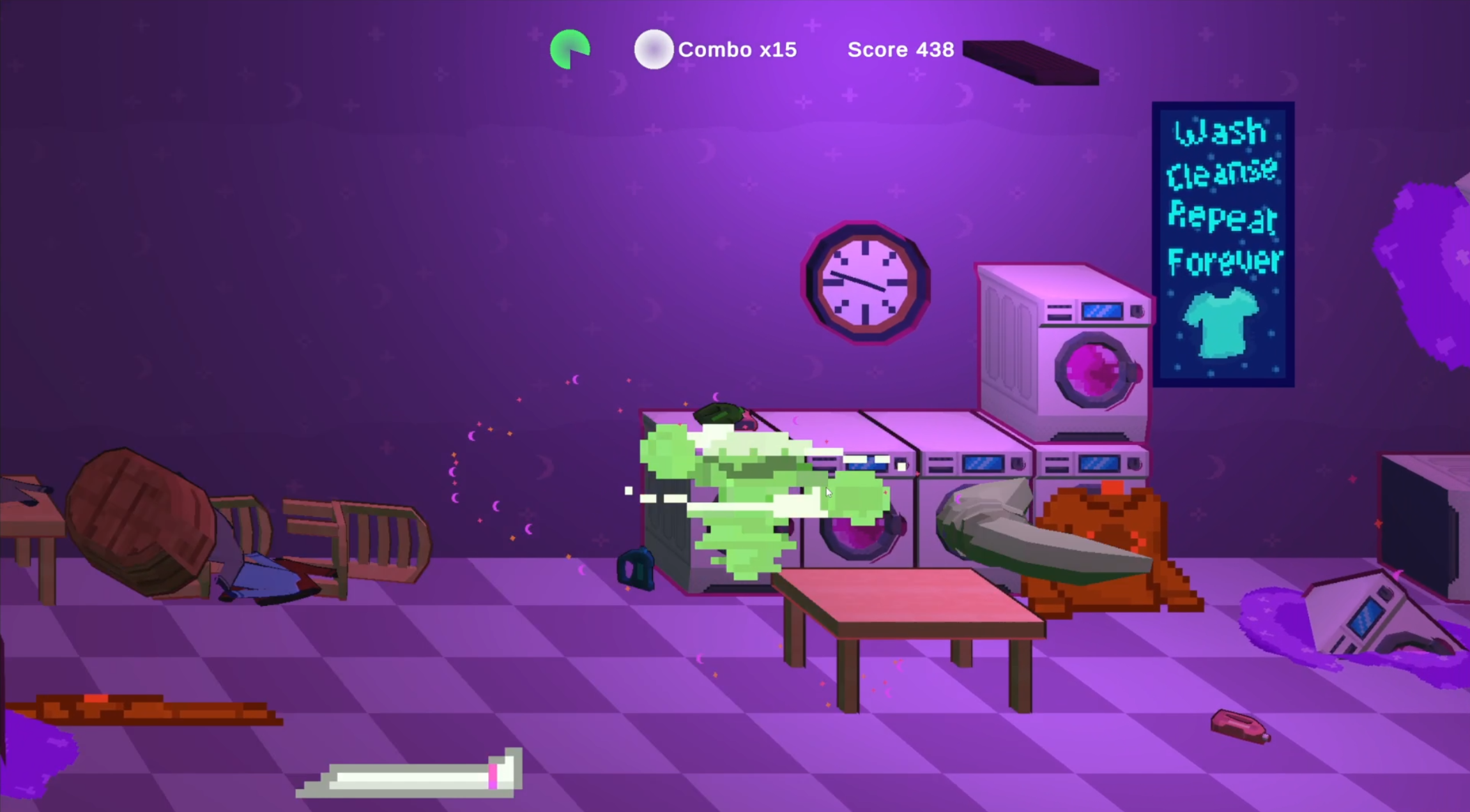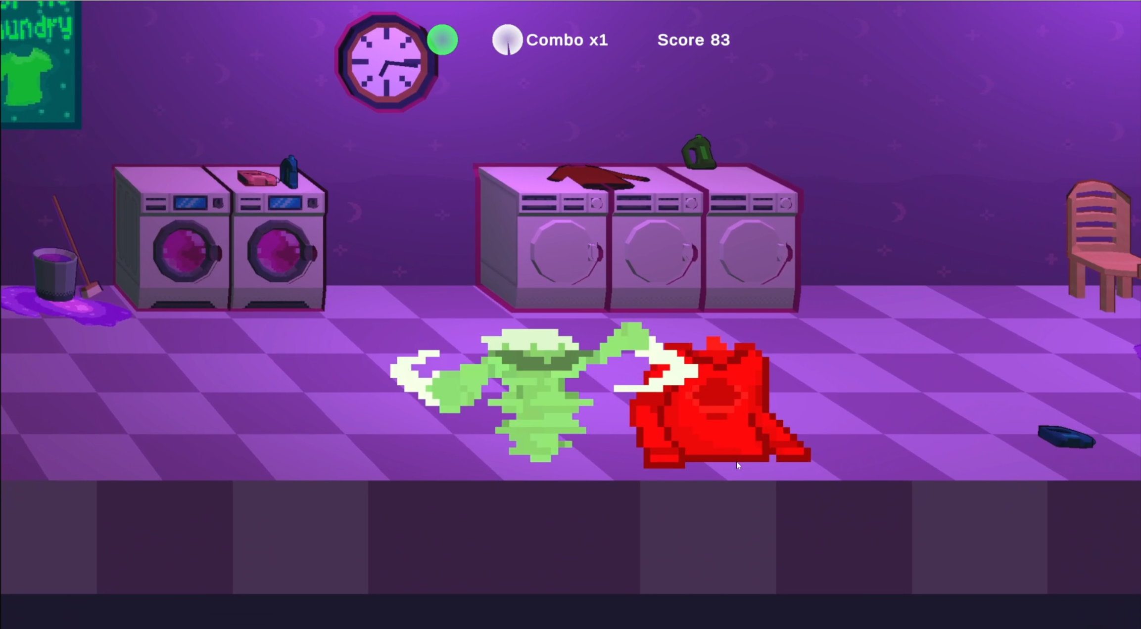 Fun idea and I liked the feel of hitting the dirty laundry. I was just missing some extra challenge/changes when looping. But well polished for what it is, that's impressive! :)