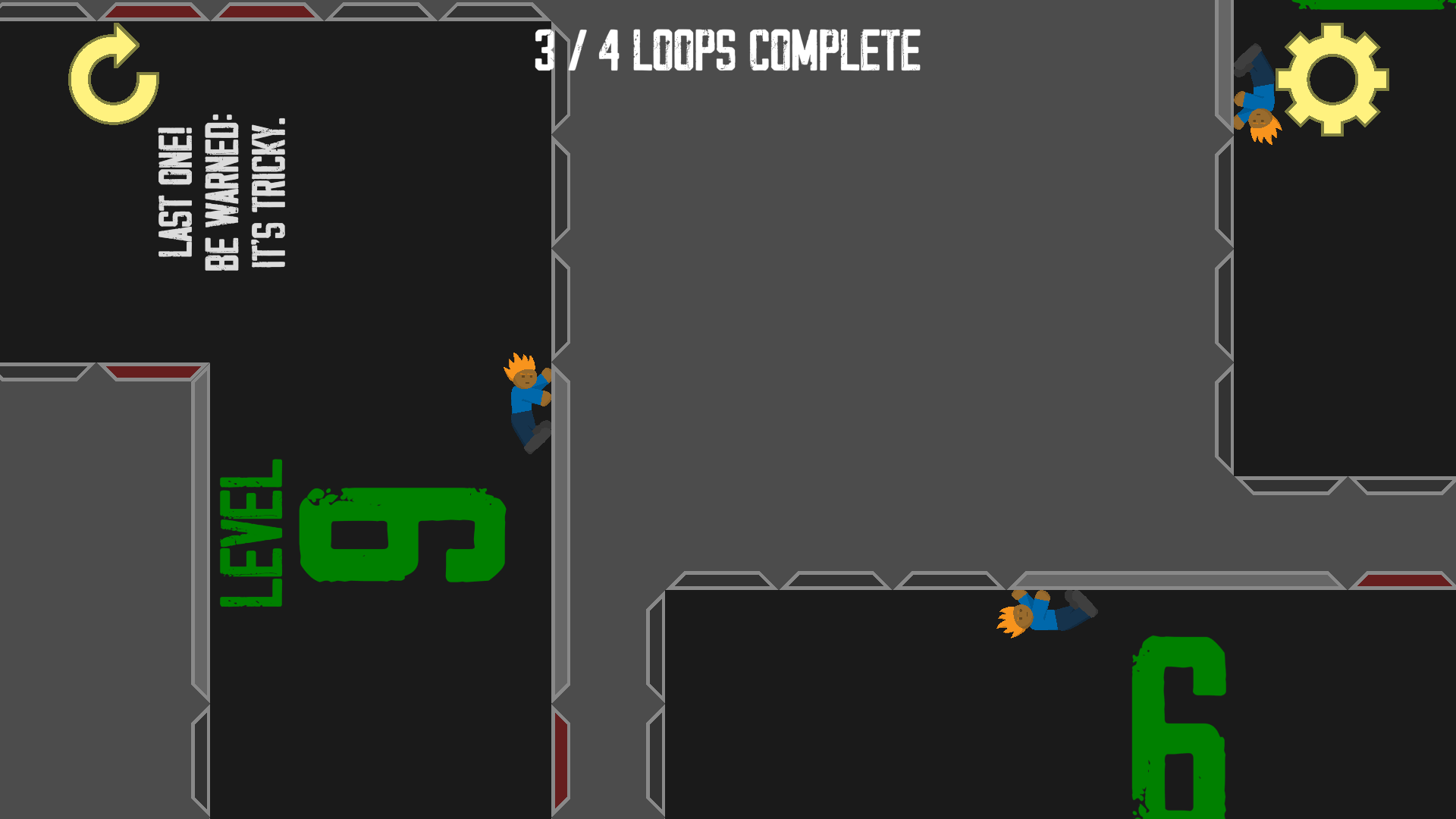Really clever and creative concept with some standout levels—especially level 4. I loved the unique details like seeing yourself in certain places and the inventive use of orientation changes. The game offers a fresh and fun take on puzzle and platforming challenges, with a well-executed loopable level design that feels both engaging and rewarding. Overall, it’s a solid, thoughtfully designed game with a lot of potential.