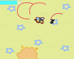 The communist bunny is too cute <3 The part with bees is difficult but manageable, however I couldn't get past the red spiny thing. I think the game would benefit from a way smaller hitbox for loops. I feel like you should not get caught if 5 pixels of the bunny's ear are in the loop, you can either make the hit box smaller or the visual loop bigger