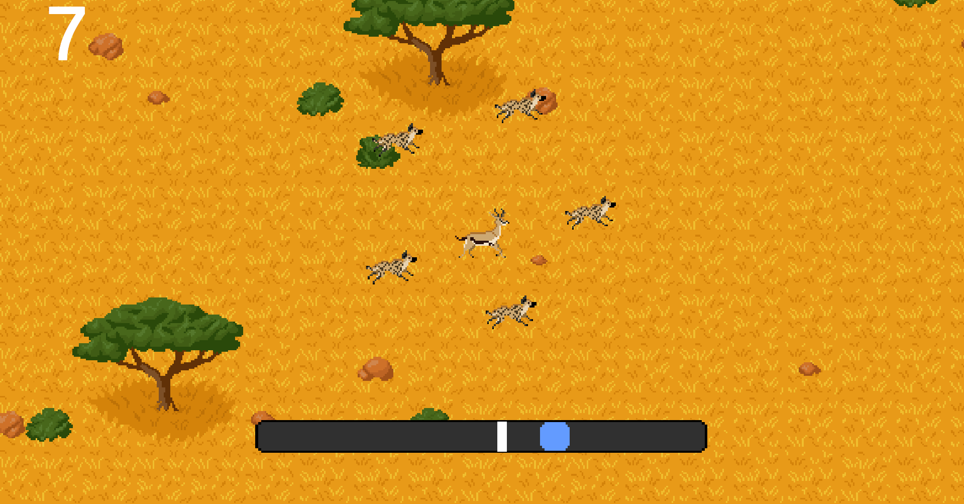 Smash the space bar to loop around and encircle the fleeing antelope.