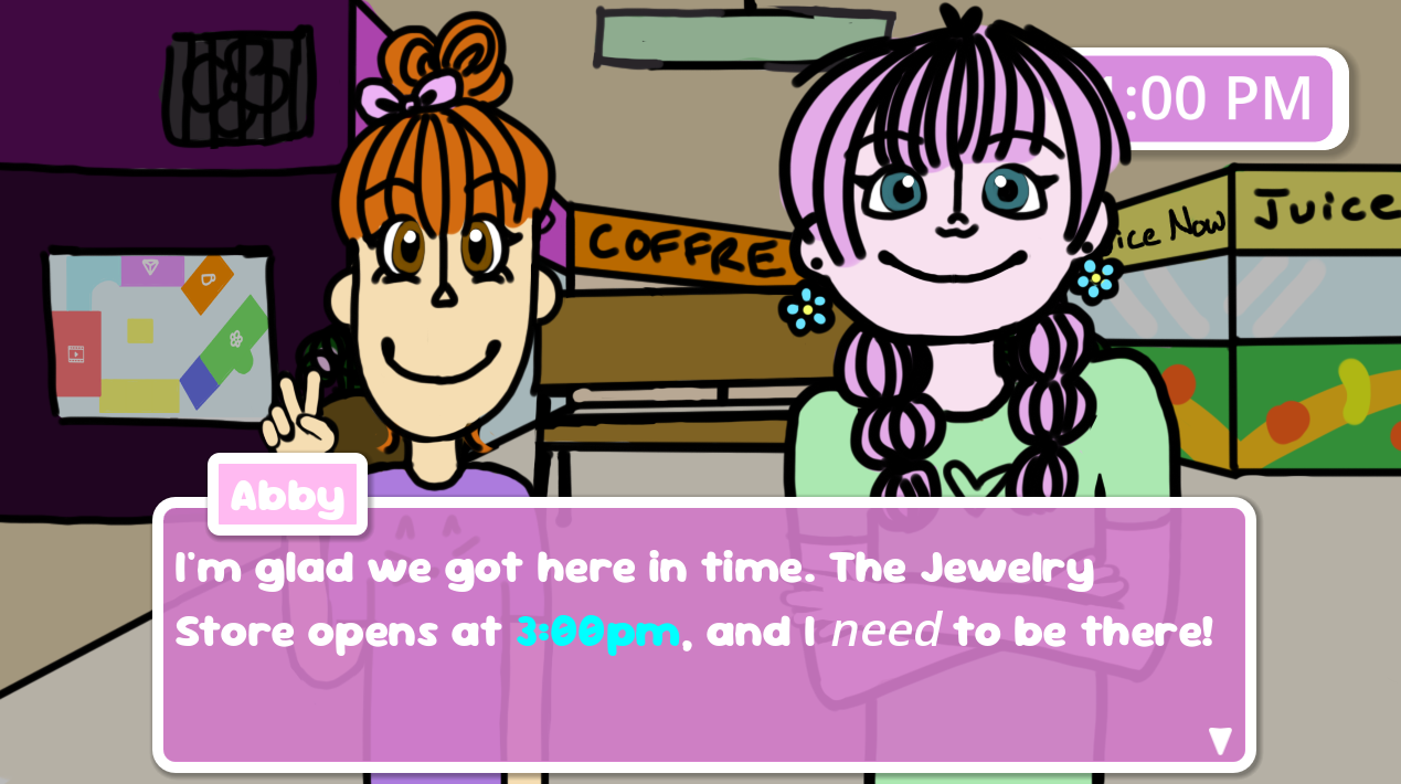 Cute game! I didn't get very far with Carrie but in the meantime I became Abby's sugar mama. Keep up the good work!