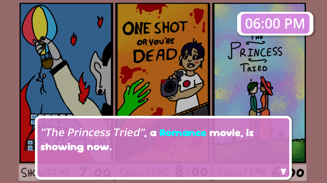 On a (little) more serious note, despite initially going for the different girl than the protagonist wanted (by accident I swear) I enjoyed the game. Nice idea for a loop story.