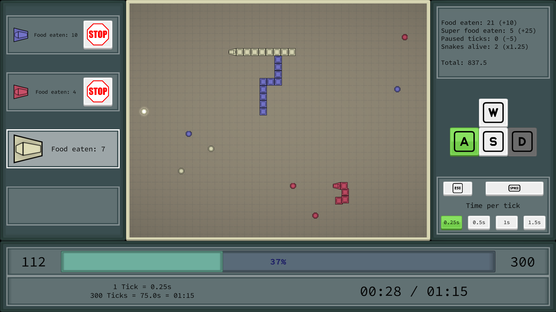 I would have liked even more chaos with more snakes. With constraints on the grid. There's plenty to do...