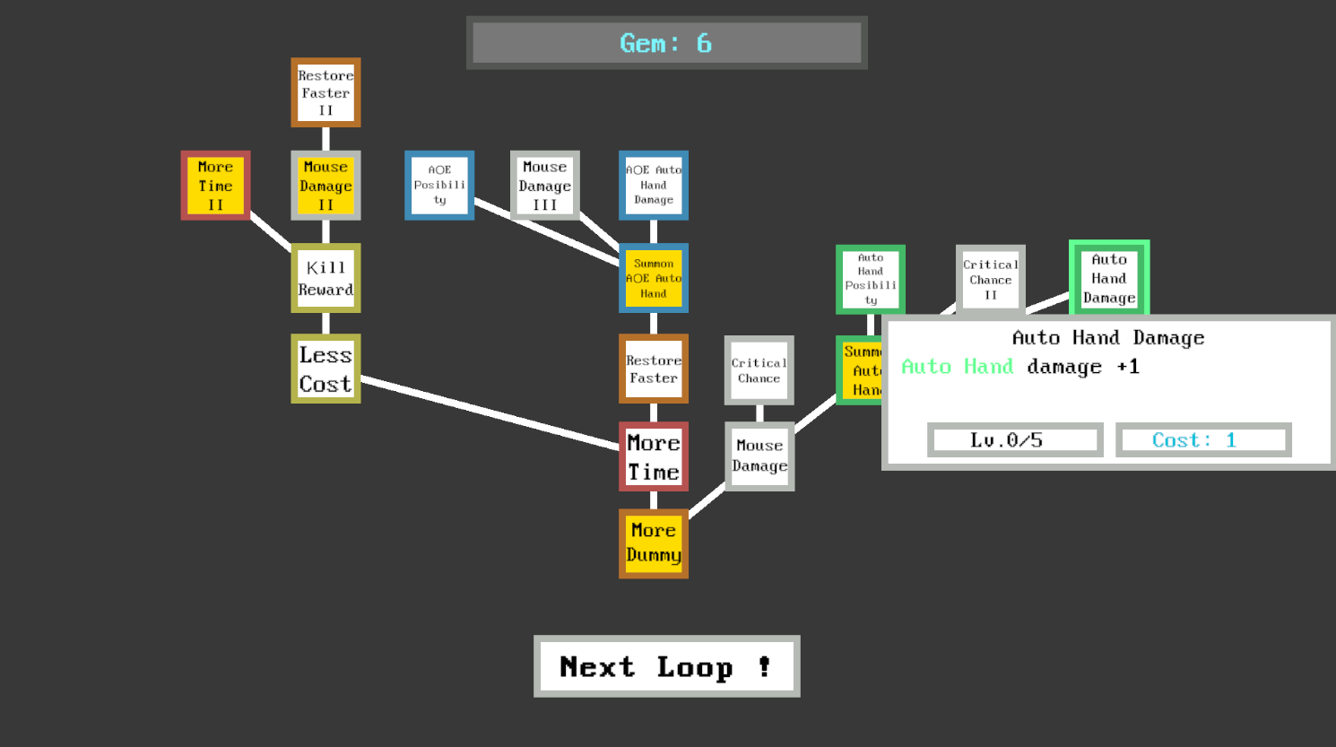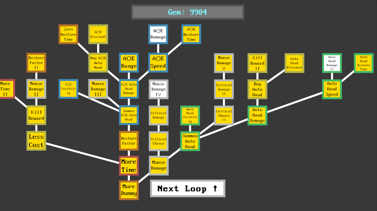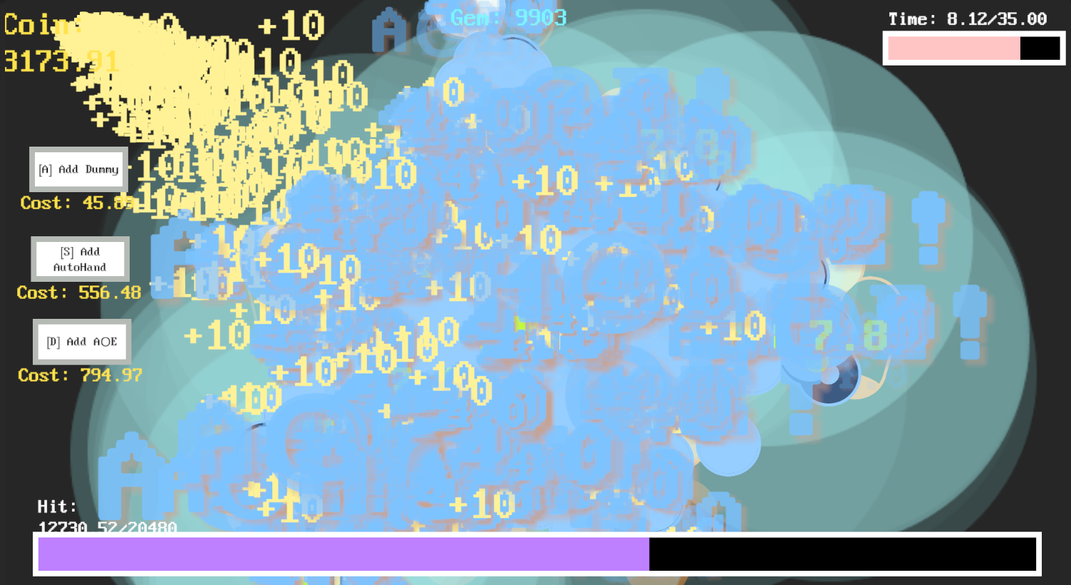 I had a chuckle when my screen exploded into a cloud of numbers as I approached 1 million hits. I liked the color-coded skill tree and the little physics pushing the dummies around when more spawned into existence.